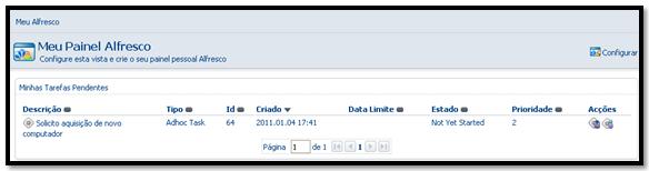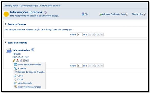 A vista seguinte mostra a imagem apresentada ao colaborador quando acede à sua conta no Alfresco.
